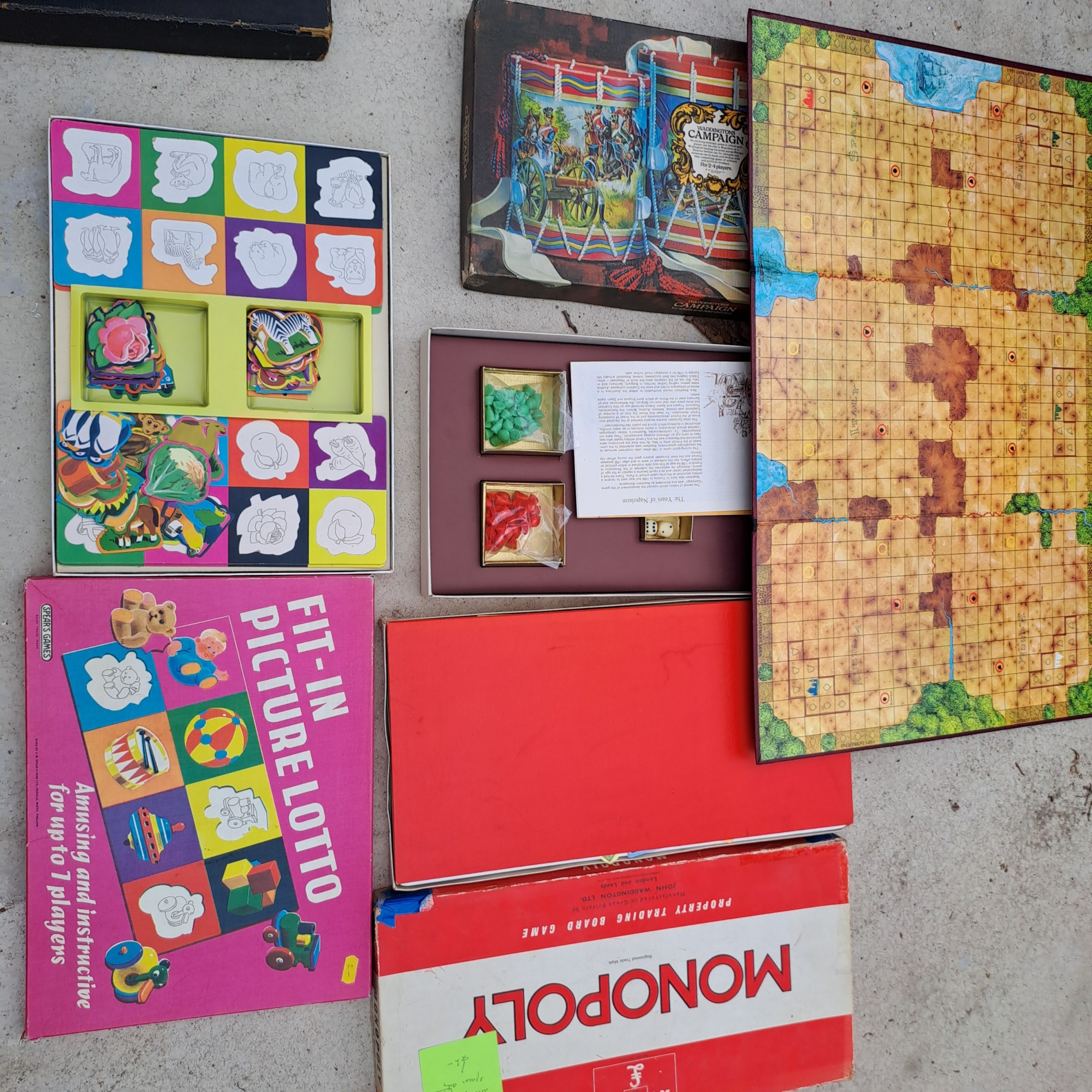 VINTAGE BOARD GAMES - MONOPOLY (INCOMPLETE) WADDINGTONS CAMPAIGN AND FIT IN PICTURE LOTTO
