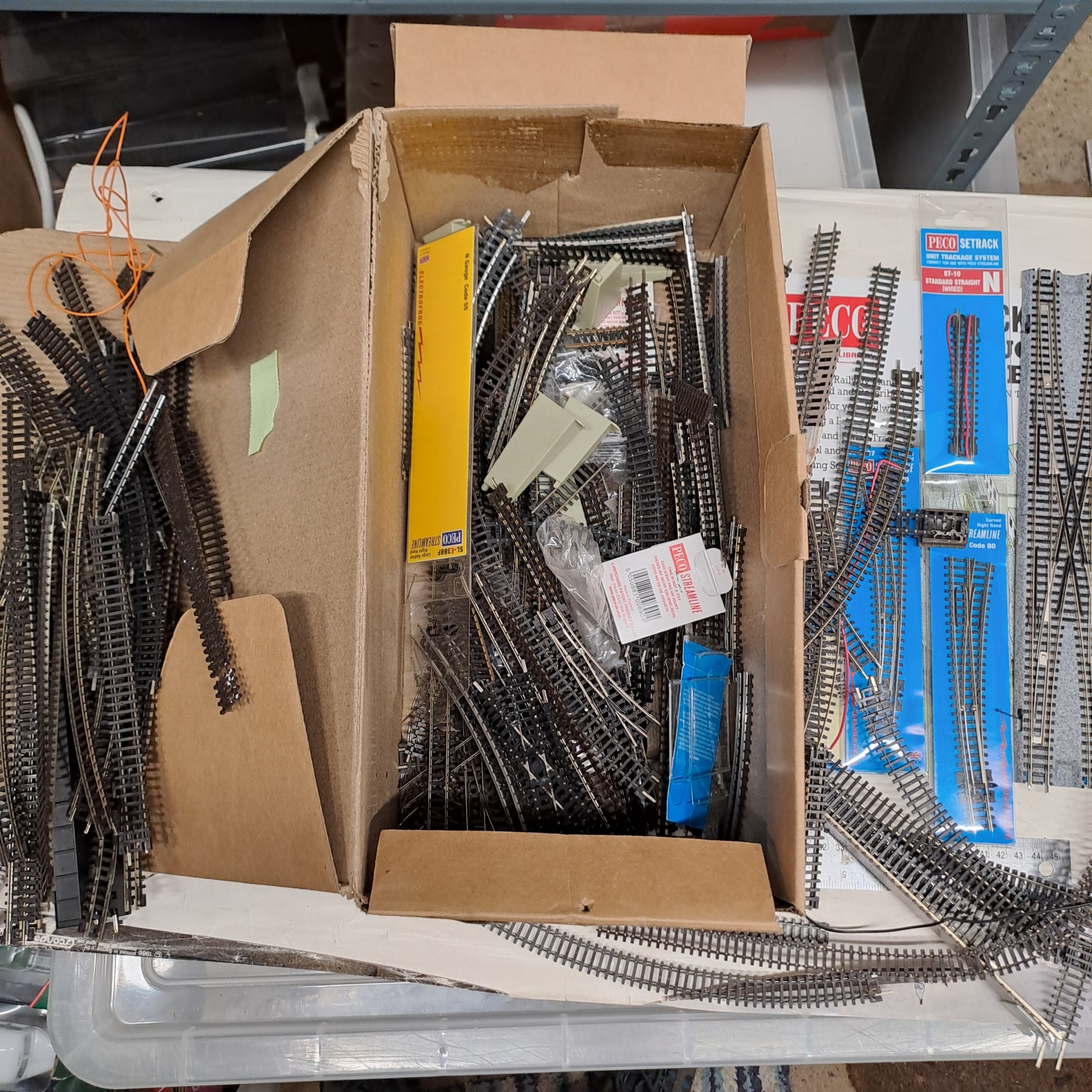 BOX OF PECO MOSTLY N GAUGE TRACK AND POINTS