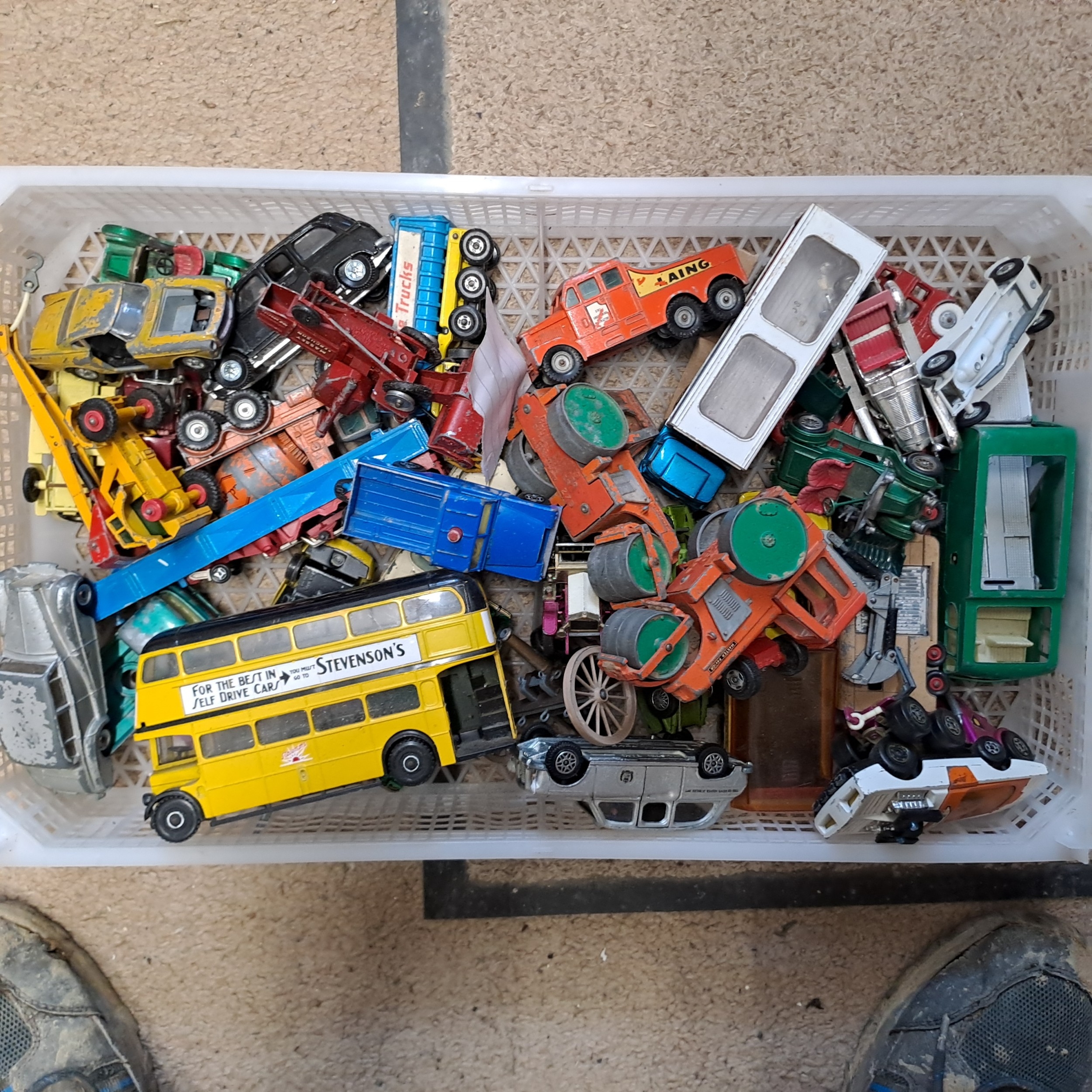 GROUP OF LARGER SIZED MATCHBOX AND CORGI PLAYWORN DIECASTS